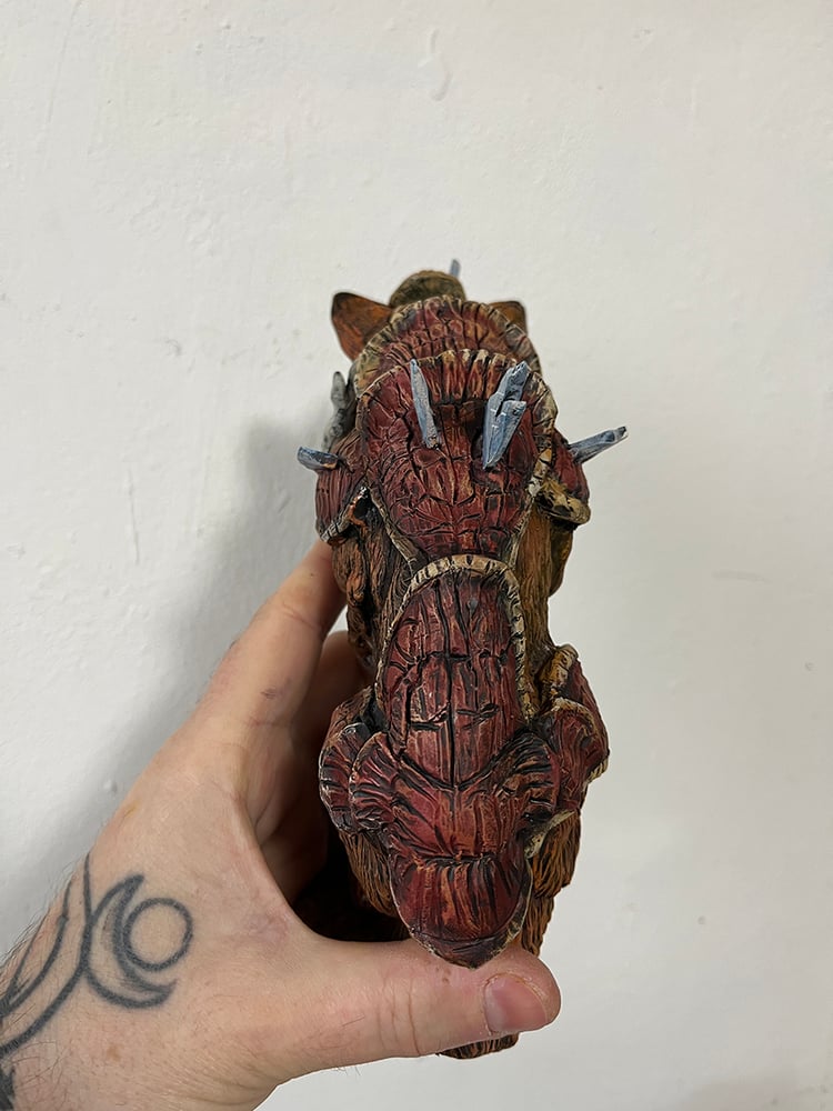 stands 8 inches tall. The statue is made of cold cast resin. Hand painted and signed by me!